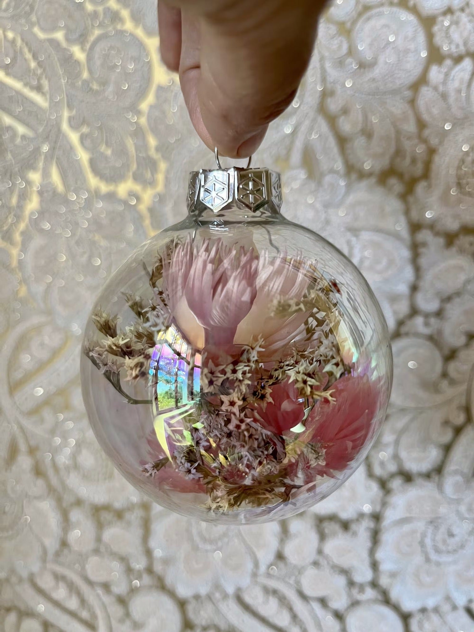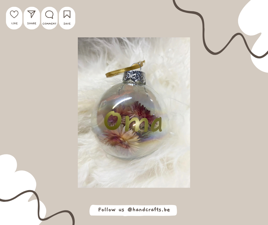 Glazen kerstbal met droogbloemen Ø8cm