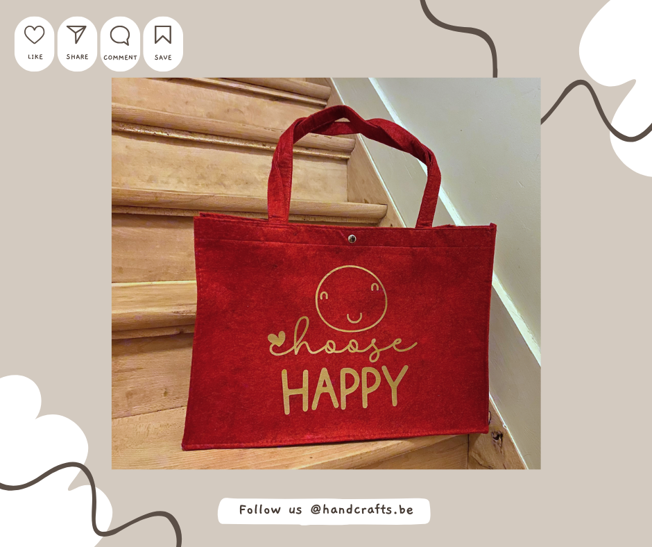 Grand sac en feutre avec bouton pression : Choose Happy